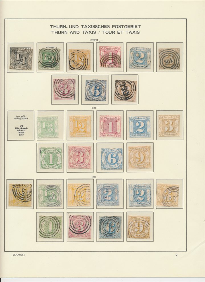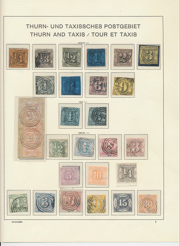 Thurn und Taxis: Iinteressante Sammlung auf alten Vordruckblättern, meist gestempelt, teils auch * ungebraucht. Wie bei alten Klassiksammlungen üblich etwas unterschiedlich, mit sauberen Stücken. Einige unbewertet. Alles ist abgebildet. Günstig angesetzt